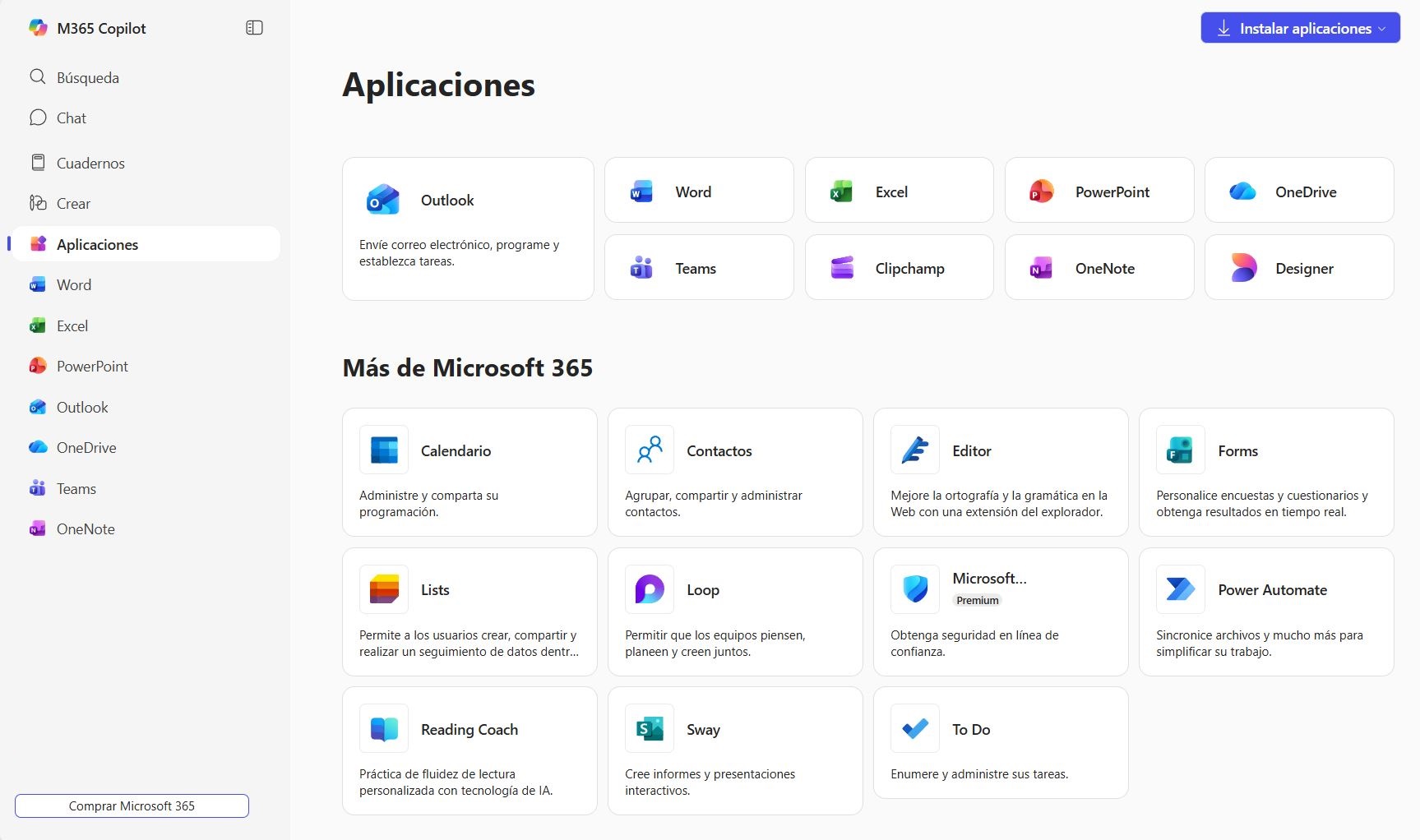 - abrir Word, Excel o PowerPoint desde el panel principal